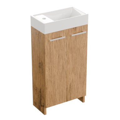 Szafka łazienkowa stojąca MALIBU 40 dąb lancelot z umywalką – nowoczesny styl do małych łazienek