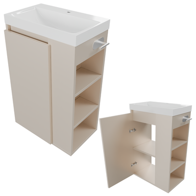 Szafka łazienkowa SEVA 46 kaszmir mat z umywalką – funkcjonalność i styl do małych łazienek wisząca/stojąca