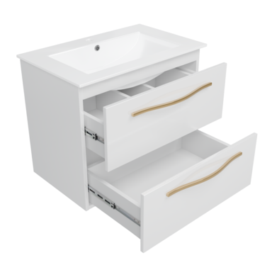 Szafka łazienkowa wisząca Girona 60 biały połysk z umywalką ceramiczną – styl glamour i elegancja