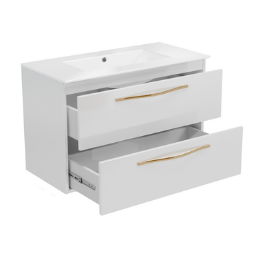 Szafka łazienkowa wisząca Girona 80 biały lakier z umywalką ceramiczną – glamour w nowoczesnym wydaniu