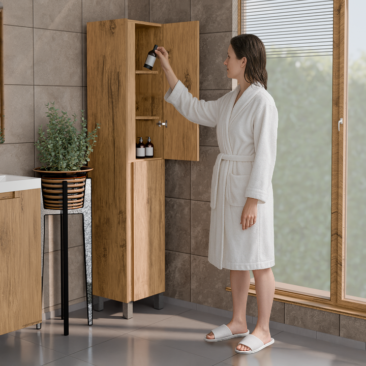 Kolekcja szafek słupkowych ARIZA to połączenie elegancji, funkcjonalności i nowoczesnego stylu. Wysokie słupki dostępne są w modnych wykończeniach: biały połysk, grafit mat oraz dąb Lancelot z wyraźną strukturą drewna. Dzięki regulowanym półkom, cichym zawiasom i możliwości montażu stojącego lub wiszącego, meble z serii ARIZA łatwo dopasujesz do każdej łazienki. To idealne rozwiązanie dla tych, którzy cenią jakość, porządek i estetyczną spójność wnętrza.